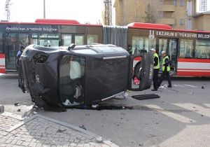 Edinilen bilgiye göre kaza, bugün saat 11.30 sıralarında Palandöken ilçesi Yenişehir semtinde meydana geldi. Esra Değirmenci idaresindeki 25 LN 486 plakalı otomobil seyir halinde iken, Orhan Ersoy yönetimindeki 25 LC 820 plakalı şehir içi yolcu taşımacılığı yapan körüklü otobüse çarparak takla attı. Çarpmanın etkisiyle otobüs içerisindeki yolcular büyük panik yaşarken, takla atan ve hurdaya dönüşen otomobilden sürücü ile yanındaki kadın arkadaşı sağ olarak çıkarıldı.