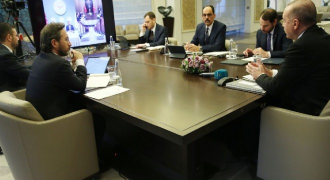 Cumhurbaşkanı Recep Tayyip Erdoğan, Bilim Kurulu üyeleriyle telekonferansla yaptığı görüşmede, “Milletimizle gönül ve işbirliği içinde inşallah bu musibetinde üstesinden geleceğiz. Bu güne kadar terörden darbeye ve ekonomik saldırıya kadar nice sıkıntıyı birlik ve berberlik içinde aşan Türkiye Allah'ın izni ile virüs meselesini çözecektir. Yeter ki kurallara uyulmasını temin edelim ve metanetimizi koruyalım” dedi. Cumhurbaşkanı Recep Tayyip Erdoğan, Bilim Kurulu üyeleriyle bir telekonferans yöntemiyle görüşme gerçekleştirdi.