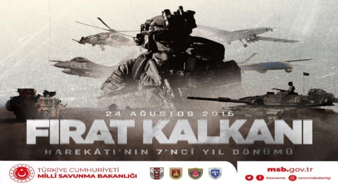 Milli Savunma Bakanlığı, Fırat Kalkanı Harekatı’nın 7. yıl dönümü dolayısıyla mesaj yayımladı. MSB, “Fırat Kalkanı Harekatı ile 4 binden fazla DEAŞ’lı teröristi etkisiz hale getiren Türk Silahlı Kuvvetlerimizi ve kahraman Mehmetçiğimizi gururla selamlıyoruz” ifadelerini kullandı.