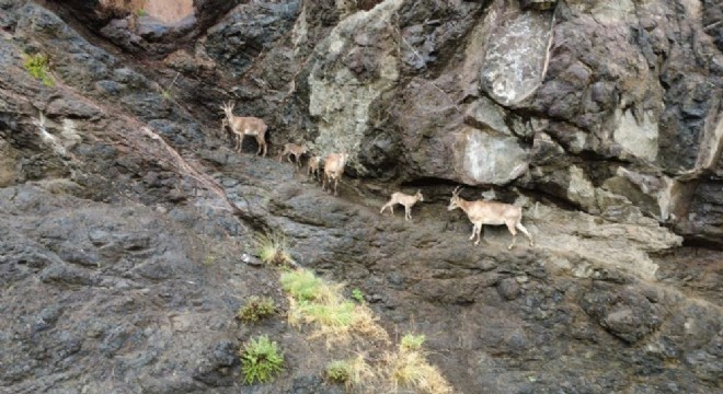 Narman yolu üzerindeki Damlıca Yaban Hayatı Koruma Sahası'nda yaban keçileri görüntülendi. Hem doğaseverlerin dronla kayda aldığı hem de yoldan geçen sürücülerin cep telefonlarıyla çekim yaptığı yaban keçileri, doğal yaşamın güzelliğini bir kez daha gözler önüne serdi.