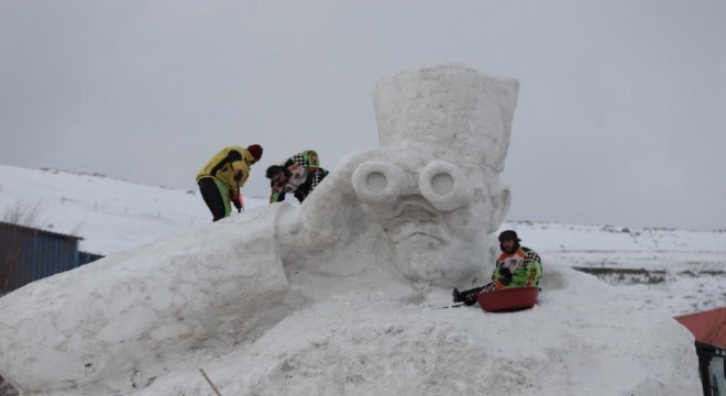 Ardahan’ın Çıldır ilçesinde, "Altın At Kristal Buz Festivali" kapsamında, Atatürk heykelinin yapımında kullanılacak karın kamyonlarla taşınmasının ardından heykelin yapımına başlandı.