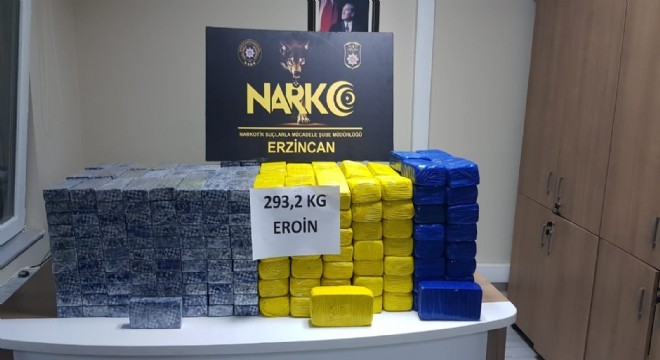 Erzincan'da narkotik polisinin düzenlediği operasyonda 293 kilo 200 gram eroin maddesi ele geçirildi.