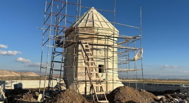 Van'ın Erciş ilçesinde 2011 yılında yaşanan depremde kısmen yıkılan ve üzerinde hükümdarlık simgeleri bulunan 600 yıllık Kara Yusuf Paşa Kümbeti'nde 1 yıl önce başlatılan restorasyon çalışmaları devam ediyor.