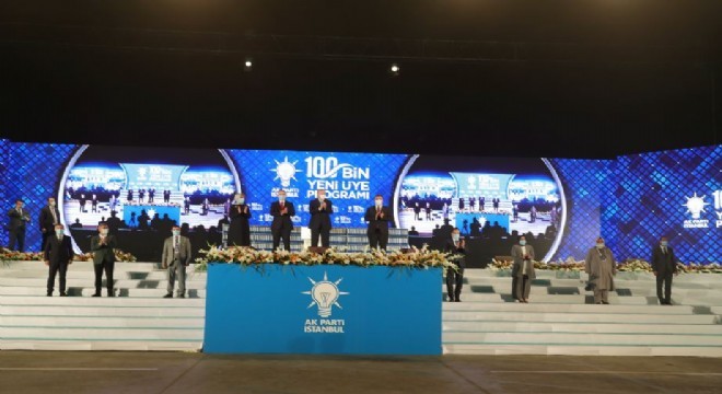 AK Parti İstanbul yeni üye katılım programında konuşan Cumhurbaşkanı Recep Tayyip Erdoğan, “Esasen bu programın 100 bin yeni üyemizin tamamının katılımıyla yapmayı istiyordum. Ancak salgın şartları sebebiyle bu şekilde sınırlı toplantıyla yapmak durumunda kaldık. Hedefimiz aslında İstanbul’un en büyük stadyumlarından birinde bu programı yapmaktı. Fakat salgın bunu ne yazık ki engelledi. Salgının engellemesi yürüyüşümüzü durdurmaz. Şu anda bu meydanda hamdolsun bu katılımla, bu coşkulu katılımla adımı attık, yolumuza devam ediyoruz. Gönüller bir olduktan sonra fiziki mesafelerin öneminin kalmadığını inanıyoruz. İstanbul teşkilatımızın 100 bin yeni üyemize büyük AK Parti ailesine hoş geldiniz diyorum. Yeni üyelerin partimize katılmasında emeği geçen tüm teşkilat mensuplarımızı tebrik ediyorum. Üye sayımız artıyor ailemiz büyüyor sloganıyla yürüttüğümüz bu çalışmanın bereketli bir şekilde neticelendiğini görüyoruz” dedi.