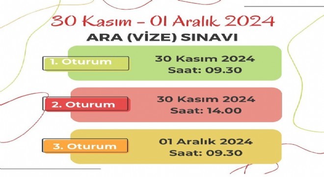Öğrencilerin heyecanla beklediği sınavlar, 30 Kasım ve 1 Aralık 2024 tarihlerinde farklı oturumlarla gerçekleştirilecek. İlk oturum 30 Kasım sabah 09:30'da, ikinci oturum ise aynı gün saat 14:00’te yapılacak. Son oturum ise 1 Aralık sabah saat 09:30’da başlayacak.