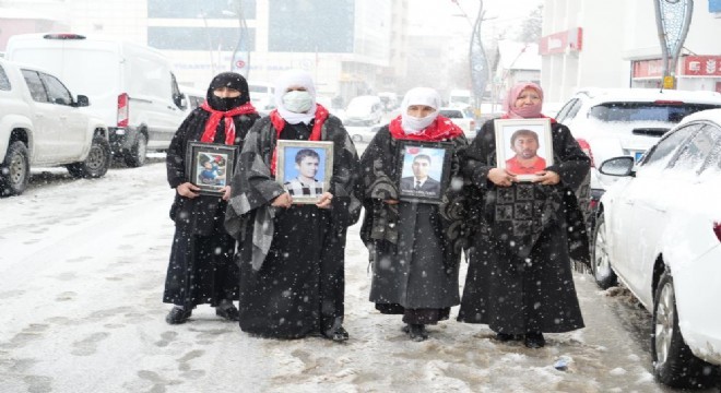 Muş'ta çocukları terör örgütü PKK tarafından kaçırılan aileler, kentte etkili olan kar yağışına rağmen evlat nöbetine kararlılıkla devam ediyor. Çocuklarına kavuşma ümidiyle her hafta çarşamba günü DEM Parti il binası önünde bir araya gelen aileler, "Anneler direniyor" ve "Yeter artık evlatlarımızı bırakın" yazılı pankartlar açtı. Anne ve babalar, yıllardır hasretle bekledikleri çocuklarına teslim olmaları çağrısında bulundu.