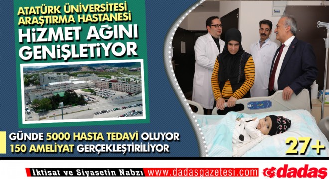 Nitelikli hekim kadrosu ve güçlü fiziki ve teknolojik altyapısının yanı sıra rasyonel ve hizmet odaklı yönetim anlayışı sayesinde borçsuz hastanelerden biri haline gelen Atatürk Üniversitesi Araştırma Hastanesi, 2018-2019 yıllarında ülkemizin batı illerinden ve çevre ülkelerden çok sayıda hastanın tedavi olmak için tercih ettiği merkezlerden biri haline geldi.
