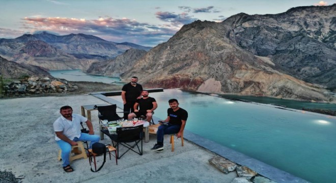 Aydın Çiçek'in yaptığı bu sonsuz havuz, bölgeye gelen ziyaretçilerin hayranlıkla izlediği bir yapı haline geldi. Avrupa'nın çeşitli noktalarında görülen sonsuz havuzlar, şimdi Erzurum ve Artvin'in sınırında, doğanın kalbinde yer alıyor. Baraj gölü ile aynı renk tonlarına sahip olması için özel olarak üretilen fayanslar kullanılarak yapılan bu havuz, ışıklı ve ısıtmalı sistemi ile de dikkat çekiyor. Bu modern yapının yanı başında, Aşpişen Kalesi'nin tarihi dokusu ve uçsuz bucaksız kanyonlar, bölgeye gelenlere hem doğa hem de tarihle iç içe olma fırsatı sunuyor.