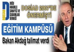 Doğu Anadolu Sanayici ve işadamları Derneği’nin 2007 yılında gündeme getirdiği, Erzurum kamuoyunda oldukça ilgi toplayan ‘Eğitim Kampüsü Projesi’ nihayet hayata geçiyor. DOSİAD’ın Eğitim Kampüsü Projesi çağrısı Sağlık Bakanı Recep Akdağ’ın talimatıyla uygulamaya konuluyor. Erzurum Sağlık Kampüsünden sonra Eğitim Kampüsü’nde de pilot iller arasında yer alacak.