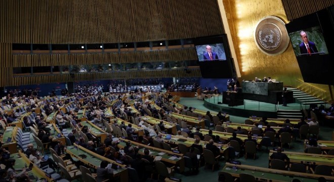 New York'taki temaslarının üçüncü gününde BM Genel Kuruluna hitap eden Cumhurbaşkanı Erdoğan, geçmiş yıllarda başbakan, ardından cumhurbaşkanı sıfatıyla katıldığı 13'üncü BM Genel Kurulundaki hitabını 7'nci sırada yaptı.