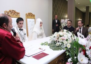Genç çifte bir ömür boyu mutluluk dileyen Büyükşehir Belediye Başkanı Ahmet Küçükler, “Bugün burada gençlerimizin bir ömür boyu süreceğini temenni ettiğimiz yuvanın kuruluşuna şahitlik ediyoruz. Allah bir yastıkta kocatsın. Mutlulukları daim olsun inşallah” dedi. Küçükler, nikâh cüzdanını geline takdim etti. Düğün havaiyi fişek gösterileriyle sona erdi.