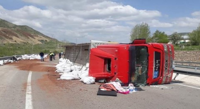 Kaza, bugün sabah saatlerinde Bayburt - Erzurum karayolunun 50. kilometresi Lolanlı Boğazı mevkiinde meydana geldi. Alınan bilgiye göre, 23 AAS 939 plakalı tır sürücüsünün direksiyon hâkimiyetini kaybetmesi üzerine virajı alamayarak yan yattı. Kazada sürücü yaralanırken tırın üzerindeki çuvallar yola saçıldı. Trafik ekipleri kaza mahallinde incelemede bulunarak yol güvenliği sağlandı.