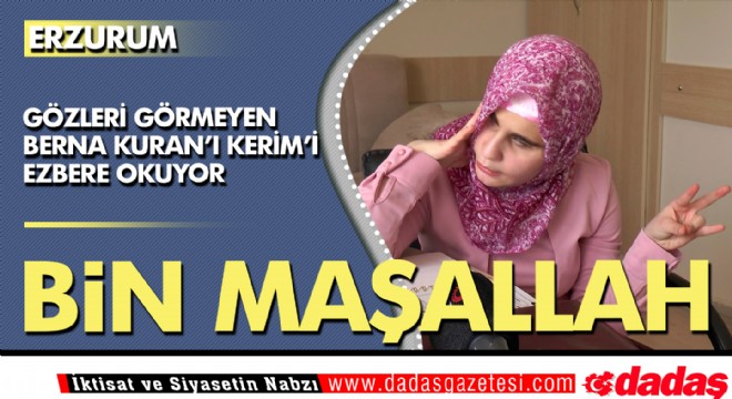Erzurum Valiliği Engelsiz Yaşam Bakım ve Rehabilitasyon Merkezi’nde eğitim gören görme ve kısmı işitme engelli olan 19 yaşındaki Berna Deligöz Kuran'ı Kerim'i ezbere okuyor.