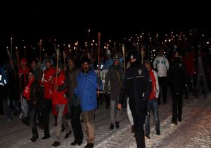 Binlerce kişi, Sarıkamış’ta donarak şehit olan 90 bin asker anısına meşaleler yakarak yürüyüş yaptı.