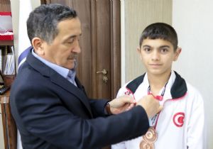 Büyükşehir Belediyesi, İşitme Engelliler Dünya Şampiyonası’nda Dünya Üçüncüsü olan milli sporcu Mehmet Akif Sönmez ve antrenörü İsmail Hakkı Özkan’ı altınla ödüllendirdi. Büyükşehir Belediyesi Genel Sekreteri Ali Rıza Kiremitci, İran’ın başkenti Tahran’da yapılan İşitme Engelliler Dünya Şampiyonası’nda 42 kiloda serbest ve grekoromen stilde dünya üçüncüsü olarak iki madalya alan genç sporcu Sönmez’i elde ettiği dereceden ötürü kutladı. Erzurum Gençlik Hizmetleri ve Spor İl Müdürlüğü’nün güreşçisi Mehmet Akif Sönmez ve antrenör İsmail Hakkı Özkan’ı elde edilen dereceden ötürü tebrik eden Genel Sekreter Kiremitci, “Erzurum, Başkanımız Mehmet Sekmen ile birlikte güreşte altın dönemini yaşıyor. 2 yılda ata sporumuzun gelişmesi için uluslararası organizasyonlara ev sahipliği yaptık. Güreşte altyapının daha iyi bir konuma ulaşması için yaz spor okullarımızda bu spor branşına büyük bir ehemmiyet veriyoruz. Genç sporcumuzu aldığı bu güzel dereceden ötürü kutluyorum” dedi. Kiremitci daha sonra Dünya Üçüncüsü Sönmez ve antrenörü Özkan’a altın hediye etti.