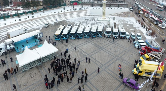 Başkan Mehmet Sekmen, “İnsanı merkez alan bir anlayış içerisinde vatandaşlarımızın dua ve desteğiyle Erzurum’u her alanda kalkındırmaya, yeniden ihya ve inşa etmeye devam ediyoruz” diye konuştu. Sekmen, şöyle devam etti: “Ekonomide, eğitimde, sağlıkta, tarımda, hayvancılıkta, sanayide, üretimde, kentsel dönüşümde, ulaşımda, çevrede, kültür ve sanatta, sporda bu mübarek şehri layık olduğu yere taşımak için var gücümüzle çalıştık ve çalışmaya da devam ediyoruz. Türkiye’nin yükselen şehri Erzurum’un kutlu yürüyüşü inşallah 31 Mart seçimleriyle daha da güçlenecek ve daha da büyüyecek. Milli iradenin mihenk taşı Erzurum’a en iyi hizmetleri sunma noktasında gece gündüz demeden çalışmaya dünden daha büyük bir şevk ve heyecanla devam etmekteyiz. Gayret bizden, Tevfik Yüce Allah’tan...” Konuşmaların ardından filonun açılışı yapıldı, araçların tanıtımı gerçekleştirildi.