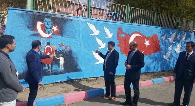 Çat Yatılı Bölge Ortaokulu, 15 Temmuz Demokrasi Şehitlerini konu alan bahçe duvar çalışmasıyla tebrikleri topladı. Okul öğretmenlerinden Ömer Dinler ve Ümit Karataş’ın 15 Temmuz kahraman şehitlerinden Ömer Halisdemir ve 15 Temmuz anısıyla çalıştıkları duvarı İlçe Kaymakamı Ramazan Pektaş ve İlçe Milli Eğitim Müdürü Mevlüt Yıldız ziyaret etti.