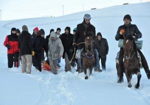Son yılların en çetin kışını geçiren Bitlis’in Tatvan ilçesinde yağışının durmasının ardından çocuklar karda yeni eğlenceler bulmaya başladı.