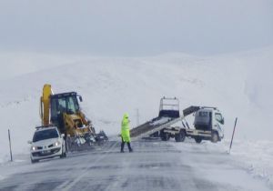 “Kars’ın beyaz çilesi” diye bilinen ve her kış mevsiminde onlarca kazanın meydana geldiği Digor Yolu’ndaki buzlanma nedeniyle birçok araç yolda mahsur kaldı, bazı araçlar şarampole kaydı. Yolda karla mücadele çalışması yapılmasına rağmen kısa sürede tipiden dolayı yeniden kapanan yollar kazaları da beraberinde getiriyor. Digor, Dağpınar arasında yoldan çıkarak şarampole uçan kamyonet, Digor Belediyesi’ne ait kepçe ile çıkarıldı. Yolda güvenlik önlemleri alan trafik ekipleri kazadan dolayı bir süre yolu trafiğe kapattı. Trafiğe kapanan yolda araç kuyrukları oluşurken kaza yapan kamyonet kepçe ile saplandığı yerden çıkarılarak kurtarma aracına yüklendi. Kurtarma aracına alınan kamyonet daha sonra bölgeden götürüldü. Yaklaşık 50 dakika trafiğe kapatılan yol trafiğe açılarak araçların geçişine izin verildi.