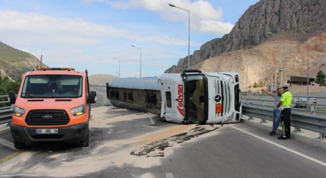 Kaza nedeniyle kapanan yol tankerin vinçlerle kaldırılmasının ardından tekrar trafiğe açıldı.