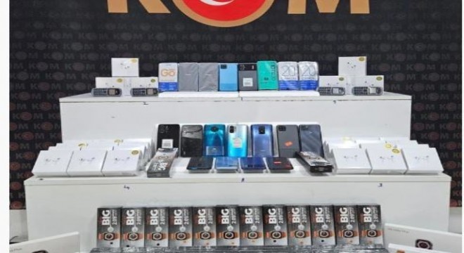 KOM ekiplerince 2 işyerine düzenlenen operasyonda yapılan aramada gümrük kaçağı 24 cep telefonu, 32 Airpods kulaklık ve 27 akıllı saat ele geçirilerek muhafaza altına alındı.