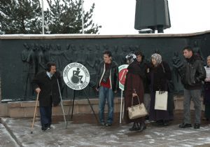 3 Aralık Dünya Engelliler Günü'nde Türkiye Sakatlar Derneği Şubesi ile Zihinsel Engelliler Derneği üyeleri Havuzbaşı Atatürk Anıtı'na çelenk koydukları sırada yalnız bırakıldıkları için üzüldüklerini ifade ettiler.