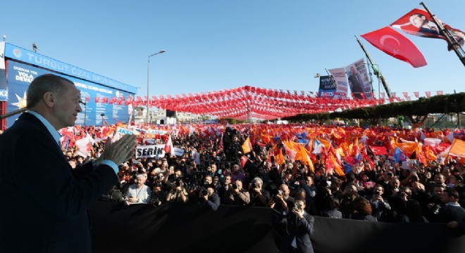 "Antalya'dan öyle bir ses verin ki. Akdeniz'in dört bir yanında duymayan kalmasın" diye seslenen Cumhurbaşkanı Erdoğan, "2023'te güvenli, huzurlu, müreffeh Türkiye'nin yolunu bir kez daha açmaya hazır mıyız? Türkiye Yüzyılı'nı birlikte inşa etmeye hazır mıyız? Dışarıda Türkiye düşmanlarının, içeride onların maşalarının heveslerini bir kez daha kursaklarında bırakmaya hazır mıyız? Bir olarak, iri olarak, diri olarak, kardeş olarak, hep birlikte Türkiye olarak. 2023'te Cumhuriyet'imizin yeni asrını karşılamaya hazır mıyız?" dedi.