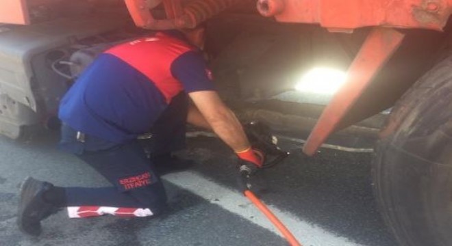 Erzincan’da meydana gelen trafik kazasında bariyerlere sıkışan kamyon itfaiye tarafından kurtarıldı.