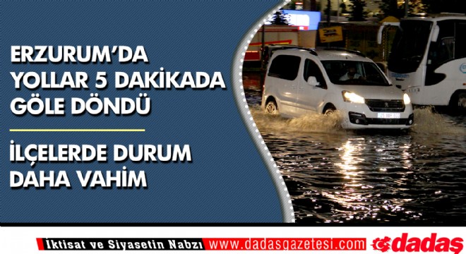 Meteoroloji 12. Bölge Müdürlüğünün, yaptığı sağanak yağmur uyarısı sonrasında Erzurum sağanak yağmura teslim oldu. Başta, Palandöken ve Yakutiye ilçelerinde olmak üzere birçok bölgede ana yollar su altında kalırken, yaşam durma noktasına geldi. Sağanak yağışa hazırlıksız olarak yakalanan vatandaşlar yağmurdan dolayı mağdur olurken, otomobiller göle dönen yollarda ilerlemekte güçlük çekti.