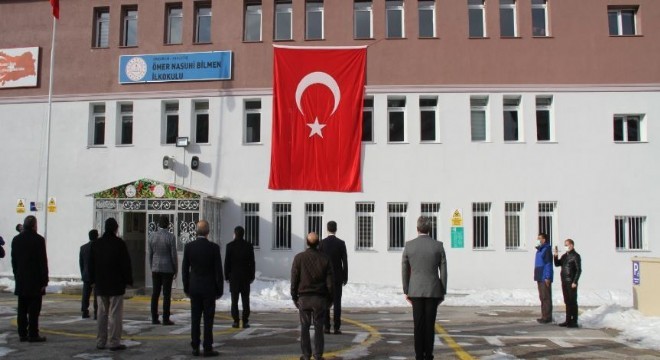 Erzurum İl Milli Eğitim Müdürü Salih Kaygusuz’un da katıldığı törende Yakutiye İlçesi Ömer Nasuhi Bilmen İlkokulu bahçesinde okul yönetimi ile birlikte düzenlenen İstiklal Marşı okundu.