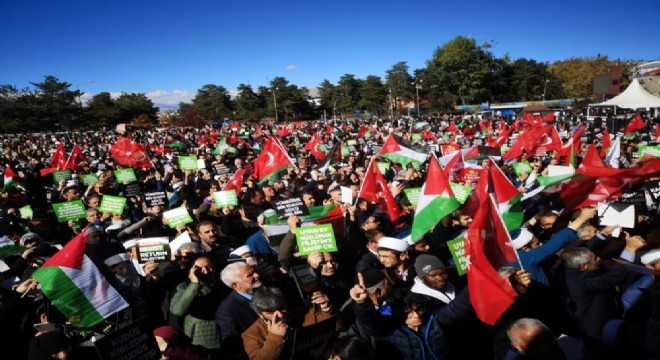 İsrail’in Gazze’de sürdürdüğü saldırılara tepkiler ülke genelinde devam ediyor. Erzurum Sivil Toplum Platformu tarafından Narmanlı Camii'nde kılınan cuma namazını müteakip gıyabi cenaze namazı kılındı. Burada toplanan binlerce Erzurumlu Cumhuriyet Caddesi üzerinden yürüyerek İsrail’in Filistin’deki saldırılarını protesto etti.