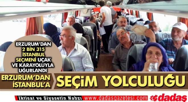 İstanbul'da 23 Haziran Pazar günü yapılacak Büyükşehir Belediye Başkanlığı seçimi için Erzurum AK Parti İl Başkanlığı tarafından sürdürülen çalışmalarda Cumhur İttifakı adayı Binali Yıldırım’ı desteklemek için tatilini Erzurum’da geçiren 2 bin 315 İstanbul seçmeni uçak ve otobüslerle uğurlandı.