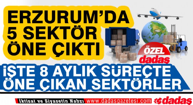 TİM  verilerine göre, bu yılın ocak-ağustos ayları arasında Erzurum’dan  en fazla ihracat gerçekleştiren 5 sektör 3.8 milyon dolarla Kimyevi maddeler ve mamulleri, 2.7 milyon dolarla madencilik ürünleri, 2.2 milyon dolarla Çimento Cam Seramik ve Toprak Ürünleri, 1.5 milyon dolarla demir ve demir dışı metaller, 1.0 milyon dolarla çelik sektörü oldu.