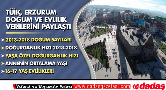Türkiye İstatistik Kurumu Nüfus verilerine göre Erzurum’da 2013 yılında 2.49 çocuk olan ortalama doğurganlık hızı 2018 yılında 2.24 çocuğa geriledi. Erzurum’da doğurganlık hızı 2013 yılında 2.49 çocuk, 2014 yılında 2.60 çocuk, 2015 yılında 2.52 çocuk, 2016 yılında 2.45 çocuk, 2017 yılında 2.41 çocuk, 2018 yılında da 2.24 çocuk olarak belirtildi.