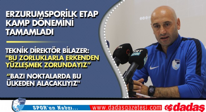 Spor Toto. 1. Lig ekiplerinden BB Erzurumspor yeni sezon kamp sürecinde ki Erzurum kampını tamamladı. Teknik Direktör Muzaffer Bilazer yönetiminde akşam yapılan antrenmanla kampı tamamlayan takım idmanda koşu ve ısınma hareketlerinin ardından dayanıklılık ve kondisyon ağırlıklı çalıştı.