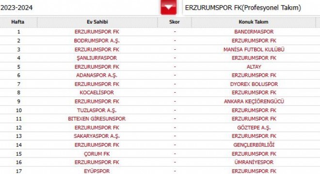 Erzurumspor ilk yarı fikstürü şöyle: