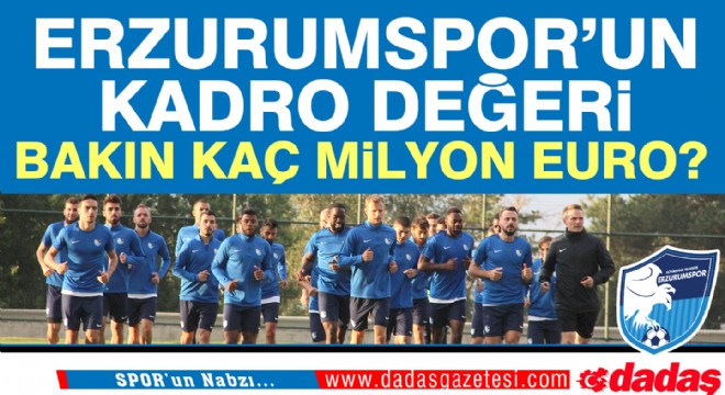 Spor Toto Süper Lig’in yeni ekibi Büyükşehir Belediye Erzurumspor ise ligin kadro değeri en az takımı olarak karşımıza çıkıyor. Mavi-beyazlıların takımdaki 28 futbolcusunun değeri de 13 milyon 930 bin Euro.