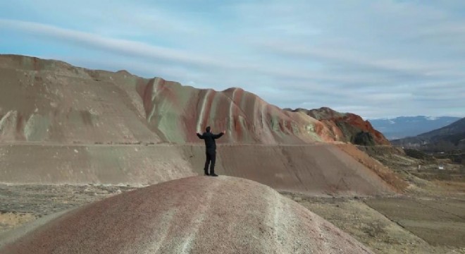 Erzurum’da bulunan gökkuşağı tepeleri rengarenk görüntüsüyle büyülüyor. Görenlere seyir zevki oluşturan gökkuşağı tepeleri havadan görüntülendi.