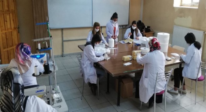 Erzurum’da iki ayrı meslek lisesinde öğretmen ve öğrenciler tarafından günlük 3 bin maske üretiliyor. Yakutiye Cumhuriyet Mesleki ve Teknik Anadolu Lisesi ile Hamidiye Mesleki Teknik Anadolu Lisesi’nde Korona Virüsünün ortaya çıkmasıyla birlikte maske üretimine başlandı. 20 gram üç kat maskelik özel kumaştan üretilen maskeler Sağlık Bakanlığı Bilim kurulundan onaylı olarak standartlara uygun olarak yapılıyor. Tek kullanımlık hijyenik yüz maskesi üretimini artıran okullarda kapasitenin 4 bin maskeye çıkarılması planlanıyor