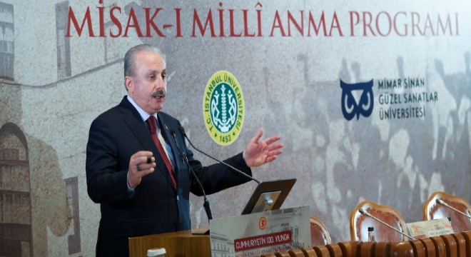 Misak-ı Milli'nin birinci maddesinde yer alan, "Sözü edilen mütarekenin içinde ve dışında din, ırk ve ülkü birliği bakımından birbirlerine bağlı olan, karşılıklı saygı ve fedakarlık duyguları besleyen, ırk ve toplum ilişkileri ile çevrelerinin şartlarına saygı gösteren, Osmanlı-İslam çoğunluğunun yerleşmiş bulunduğu kesimlerin tamamı ister bir eylem ister bir hükümle olsun birbirlerinden ayrılamayacak bir bütündür." ifadelerini de aktaran Şentop, şöyle konuştu: "Emperyalist devletler tarafından 'böl ve yönet' taktiğiyle ve yapay sınırlarla birbirlerinden koparılmış kardeş toplumlara bugün yaşatılanların bir daha yaşanmaması ve birliğimizin, dirliğimizin korunması için dikkate alınması gereken bir ifadedir. 103 yıl önce ilan edilen milli yeminin hedefine bugün de sadakatle bağlıyız. Bugün de 'Bizim olanı, bizden olanı, bizimle olanı' korumak, savunmak ve yaşatmakla mükellef olduğumuzun şuurundayız. 103 yıl önce milli bekamıza yönelen tehditler, esasen bugün de devam ediyor. Biz de maruz kaldığımız tehditleri artık sınırlarımızda karşılamıyoruz. Tehditleri sınırlarımızın ötesinde karşılayıp aziz milletimizi ve gönül coğrafyamızdaki kardeşlerimizi güvenli bir şekilde yaşatmaya devam ediyoruz."