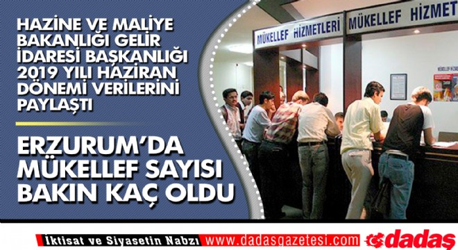 Erzurum’da 10 bin 39 Gelir Vergisi, 8 bin 256 Basit usulde Gelir Vergisi, 3 bin 55 Kurumlar Vergisi, 13 bin 863 Gelir Stopaj vergisi, 7 bin 715 Gayrimenkul Sermaye İradı ve 12 bin 968 Katma Değer Vergisi(KDV) faal mükellefi bulunduğu bildirildi.