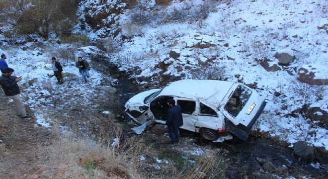 Horasan’da otomobil uçuruma yuvarlandı: 2 yaralı