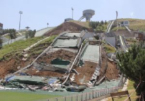 Yapılan saha incelemelerine göre, 15 Temmuz'da meydana gelen heyelan nedeniyle beş atlama kulesinin iniş rampalarının yıkıldığı ve tamamen kullanılamaz hale geldiği belirtilerek, şunlar kaydedildi: "Kulelerde ise bir hasar gözlenmemiştir. Atlama kulelerinin bulunduğu bölgede hem imara (plana) esas hem de parsel bazlı zemin etütlerinin yapıldığı öğrenilmiş olsa da devam eden bilirkişi çalışması nedeniyle atlama kuleleri, iniş rampaları ile ilgili projeye ve zemin etüt raporlarına ulaşılamamıştır. Heyelanın meydana gelmesinden önce iniş rampalarında zemin hareketlerine bağlı olarak çeşitli çatlaklar oluştuğu ve bunların onarıldığı öğrenilmiştir. Heyelandan sonra da bölgede çeşitli yerlerde zemin hareketlerinin devam ettiği tarafımızca tespit edilmiştir. İniş rampalarının 40 santimetre kalınlığında betondan oluştuğu ve bu betonun yamaç üzerine yerleştirildiği gözlenmiştir. Betonun altında ince ve bir metreden kısa demirlerin belirli aralıklarla zemine düşey olarak yerleştirildiği belirtilmiş ancak heyet arazide bu demirleri görememiştir. 40 santimetre kalınlığındaki betonun tabanına yatay olarak demir serilmesi ve üzerine beton dökülmesi şeklinde oluşturulduğu, beton içinde demir olmadığı tespit edilmiştir."
