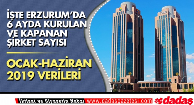 TOBB Kurulan ve kapanan şirket verilerine göre bu yılın ilk 6ayında Doğu Anadolu Bölgesinde 859 şirket, 18 kooperatif ve 495 de gerçek kişi ticari işletmesi kuruldu. 2019’un ocak-haziran ayları toplamında 141 şirket, 15 kooperatif tasfiye işlemi gördü. Bölgede 120 şirket, 27 kooperatif ve 364 gerçek kişi ticari işletmesi faaliyetini durdurdu.