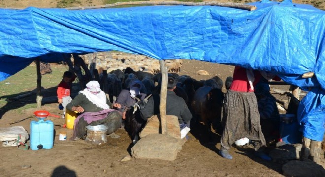 Muş’un yaylalarına hayvanlarını çıkaran besiciler, organik peynir, yağ ve süt ürünleri elde etmeye başladı. Eşleri, çocukları ve aile büyükleri ile yaylalara çıkan kadınlar, zor yaşam koşullarında derme çatma çadırlarda tüm günlerini çalışarak geçiriyor. Mesailerinin gün doğumu ile başladığını ve hava kararana dek sürdüğünü belirten yaylacı kadınlardan Zehra Yaldız, merkeze bağlı Derecik köyünden 2 bin 600 rakımlı Avadorik Yaylası’na çıktıklarını söyledi. Küçükbaş hayvan beslediklerini ve onların sütünden elde ettikleri ürünleri satarak geçimlerini sağladıklarını ifada eden Yaldız, “Geçim kaynağımızı hayvancılıktan elde ediyoruz. Bizim tek geçim kaynağımız hayvancılık olduğu için annemle birlikte koyunlarımızı sağdıktan sonra iki saat sütü dinlendiriyoruz. Sonra peynir yapıp tahtalara bastırıyoruz. Akşam da kesede bekletiyoruz. Peynirlerimizi genellikle gelen mandıracıları satıyoruz” dedi.