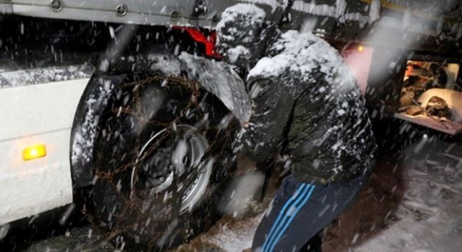 Doğu Anadolu’da etkili olan kar yağışı ve tipi nedeniyle Kop Dağı Geçidi'nde ulaşımda aksamalar yaşandı. Tır sürücüleri araçlarının lastiklerine zincir takarak yola devam etmeye çalıştı.