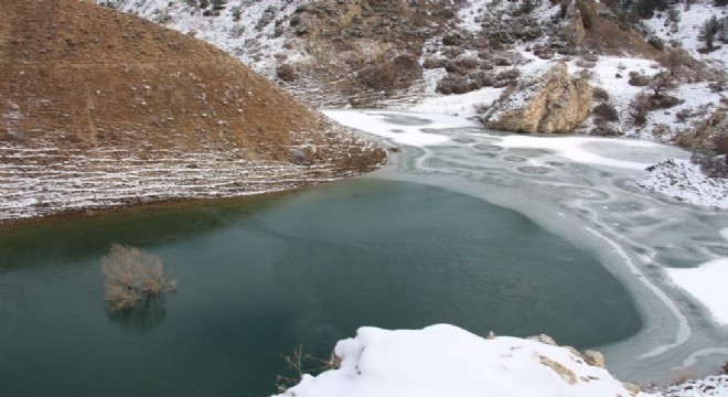 Oltu ilçesinde Sivridere sulama barajı göleti dondu