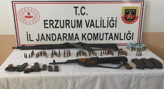 Erzurum İl Jandarma Komutanlığı ekiplerince silah ve mühimmat kaçakçılarına yönelik yapılan operasyonda 2 şüpheli gözaltına alınırken çok sayıda silah ele geçirildi.