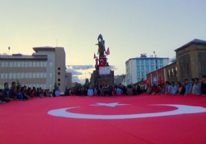 Kars’ta Diyarbakır Lice’de Türk Bayrağı’nın indirilmesini protesto eden bir grup, dev Türk Bayrağı açarak yürüdü.