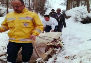 Bingöl’ün Solhan ilçesine 48 kilometre uzaklıkta bulunan Aslanbeyli köyüne bağlı Kapaklı mezrasında fenalaşan 47 yaşındaki hasta, 112 sağlık ekiplerince kızakla 4 kilometre taşınarak, ambulansa ulaştırıldı.